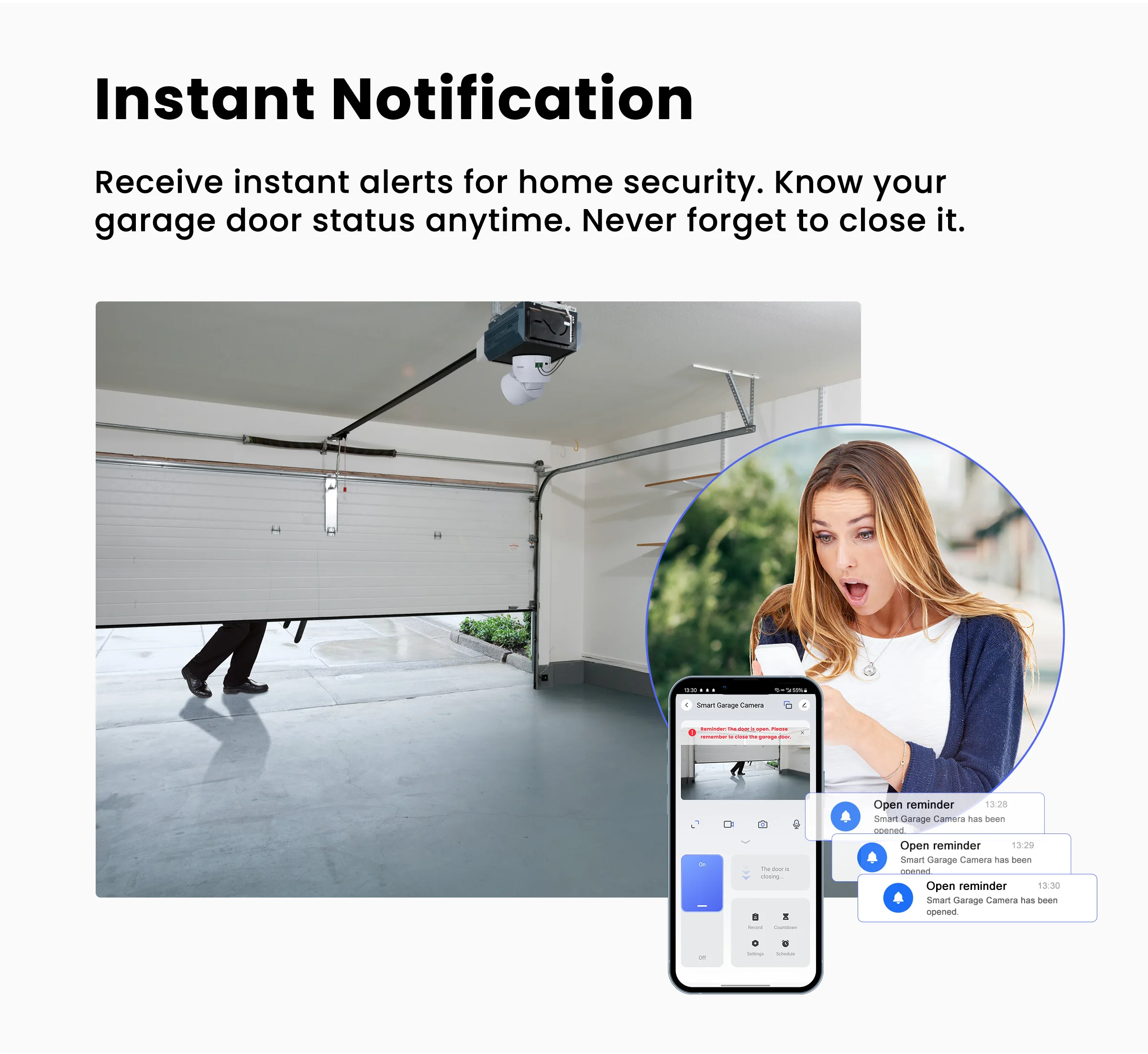 GIRIER's smart garage door opener controller, integrated with camera monitor, provides a robust security solution that not only prevents unauthorized access but also offers real-time monitoring and control.