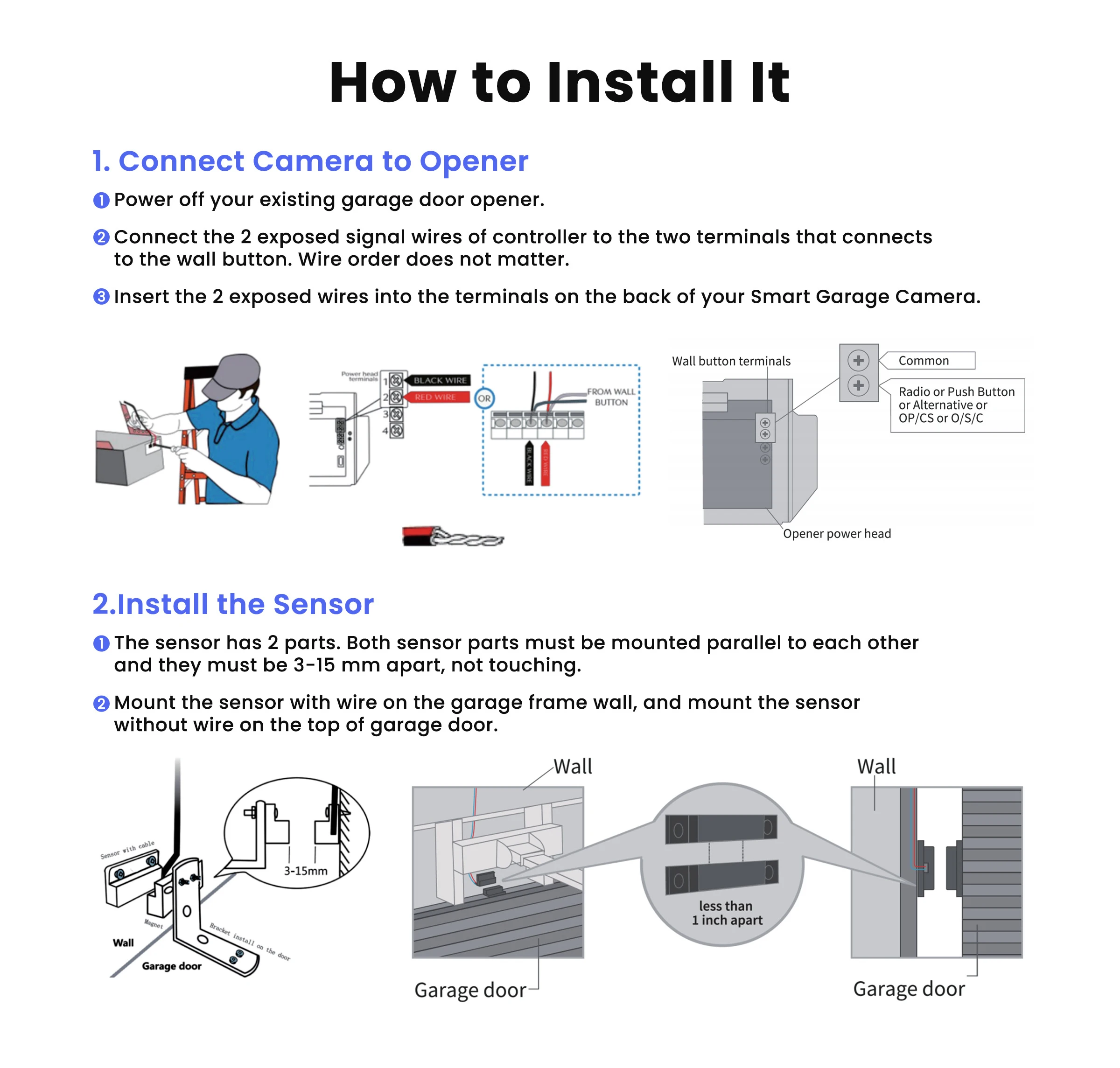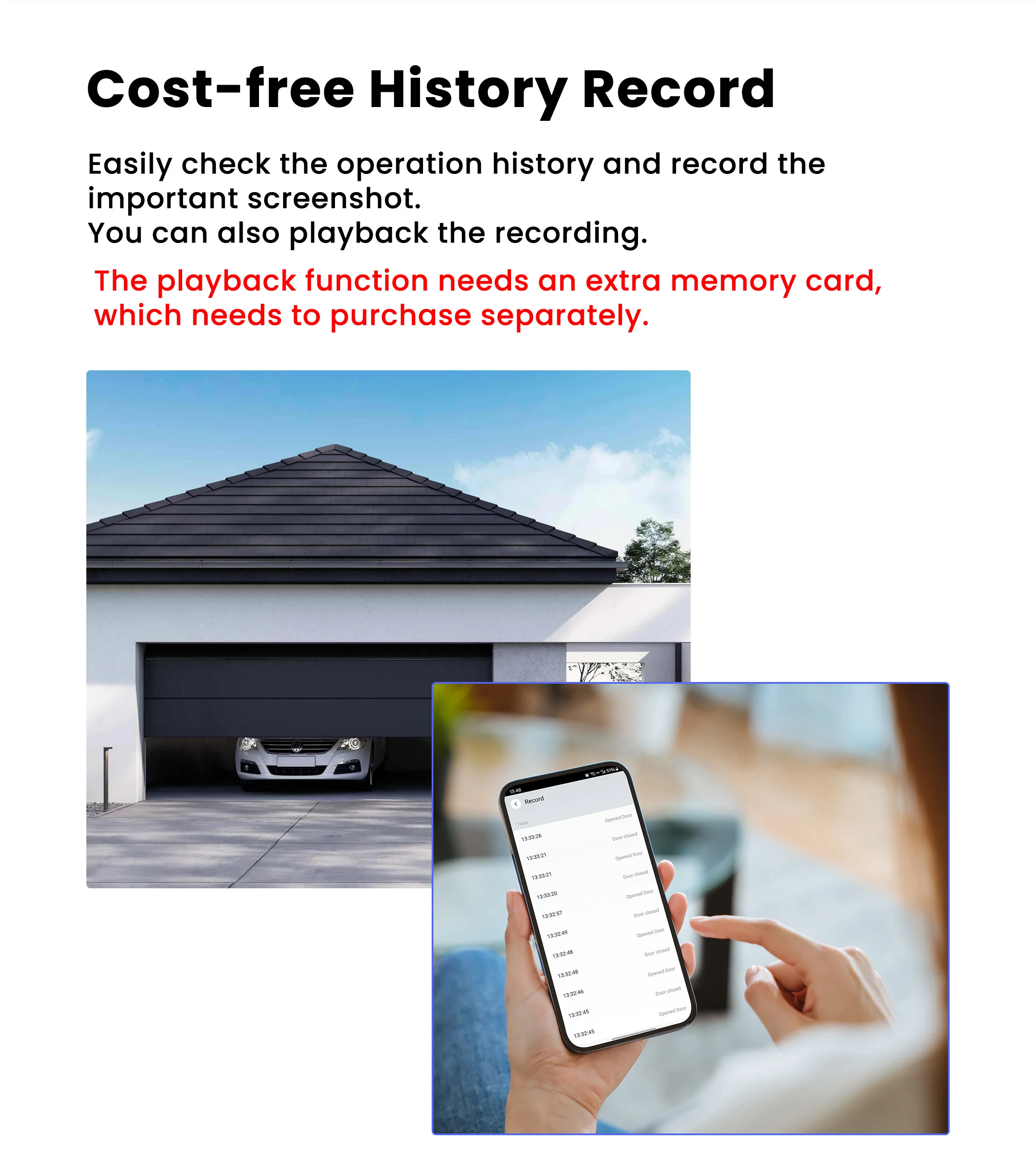 Smart Camera Garage WiFi Garage Door Opener with 1080P Support 2-way Talk Work with Alexa Hey Google