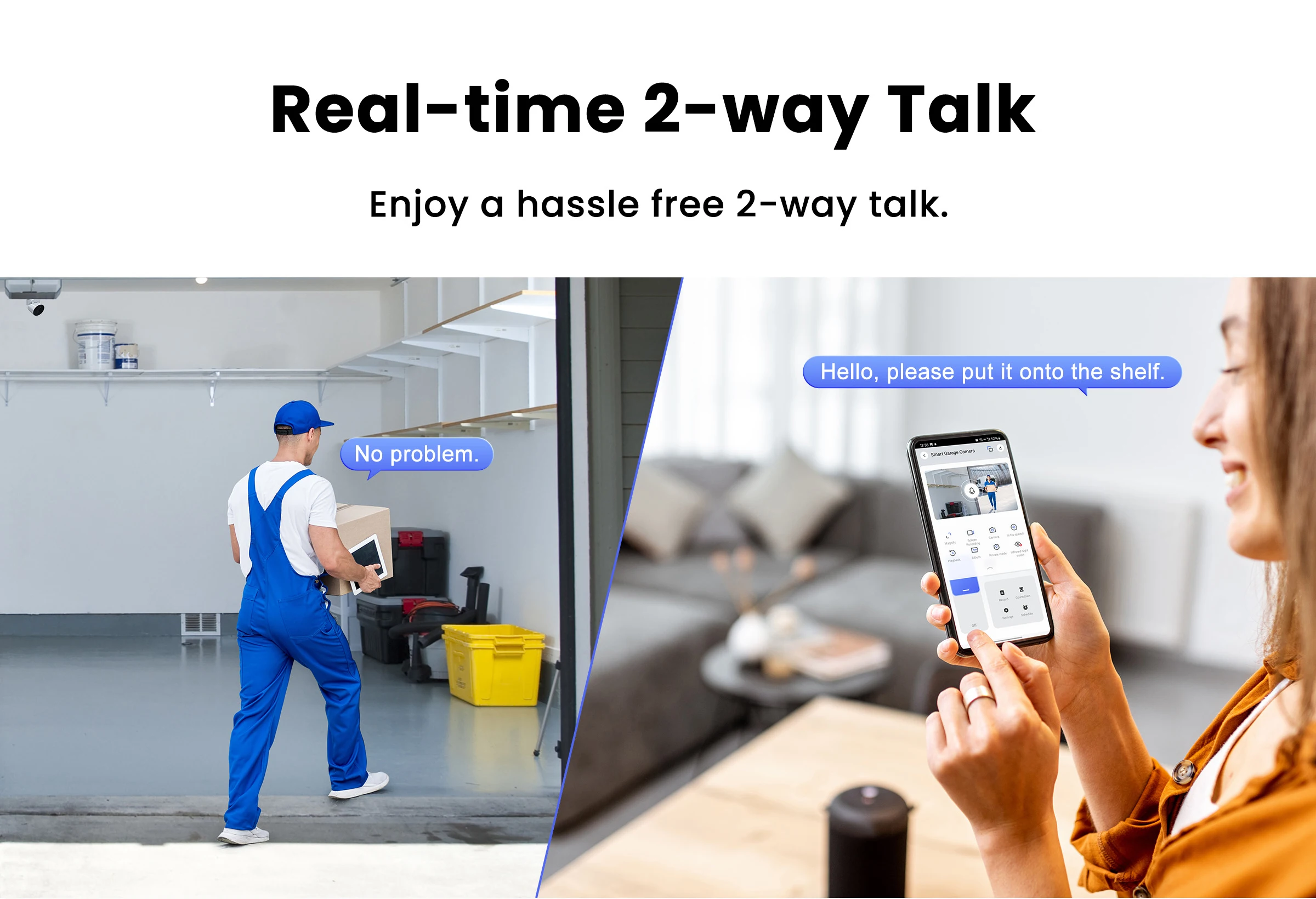 Communicate directly with anyone in your garage area through the camera's 2-way talk feature, adding an extra layer of security and convenience.